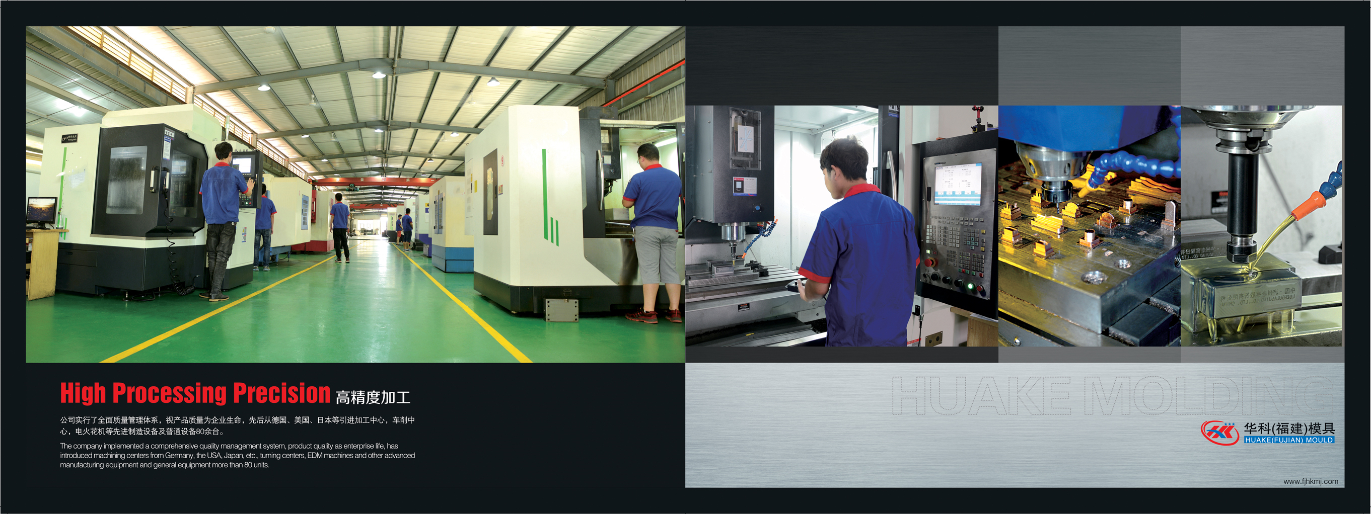 福建華科位于福建省泉州市南安官橋前梧工業(yè)區(qū),泉州華科位于福建省泉州市石獅市永寧鎮(zhèn)塔石東路135號。自有廠區(qū)面積2萬平方米,公司現有研發(fā)設計人員30余人,鉗工、機加工200余人,企業(yè)自創(chuàng)辦以來秉持"嚴管理、重質量、重信譽、優(yōu)服務"的宗旨和"天天改善,年年進步"的企業(yè)文化,取得了長遠的發(fā)展。本公司精密設備有銑床20臺,磨床30臺,線割35臺,CNC45臺,火花機20臺,三次元,二次元檢測設備各1臺,深孔鉆5臺,注塑機35臺及相關輔助設備。經過多年的發(fā)展積累,公司的核心客戶隊伍較為穩(wěn)定,客戶群也在不斷增大,與國內外眾多品牌企業(yè)有著緊密良好的合作關系,并且在動力電池模具領域內打造了華科品牌。